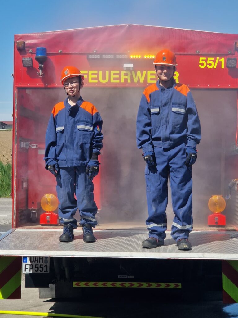 Am Ende vom Tag durften wir dann die ersten zwei Feuerfüchse mit Nebel, Licht und Wasserstrahlen in die Jugendfeuerwehr entlassen. Ihr bisher angesammeltes Wissen bietet dazu bereits die perfekte Grundlage und wir freuen uns sehr, dass sie den Weg in der Feuerwehr weitergehen.